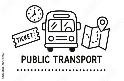 Public transport : bus, ticket, clock, and map icons