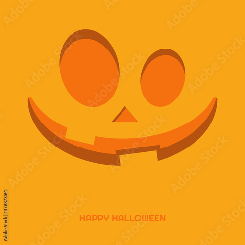 Pumpkin face on orange background vector illustration design template with smile, happy halloween holiday.