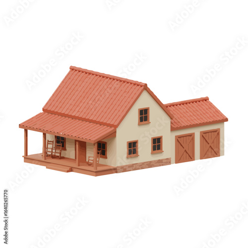 Quaint country farmhouse with rustic charm and inviting front porch scene