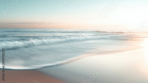 Quiet beach at sunrise with soft waves lapping on shore