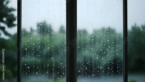 Raindrops on window glass with captivating rain texture.