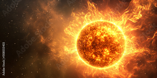 Realistic Illustration of the Sun with Solar Flares