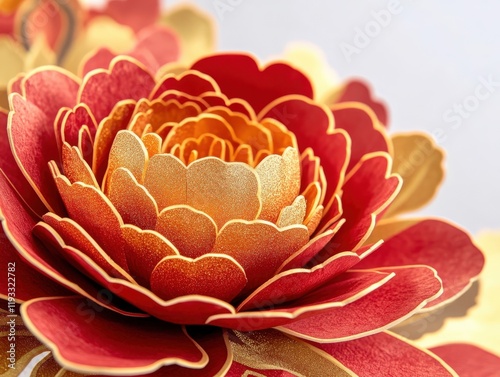 Red and Gold Paper Flower Closeup Festive Elegant Chinese New Year Decoration