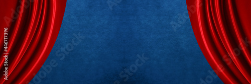 red curtains on blue background