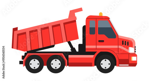 Red Dump Truck Unloading Cargo - Construction Vehicle Illustration
