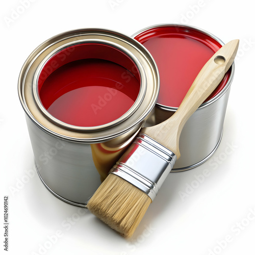 Red Paint Can and Brush Ready for a Home Makeover