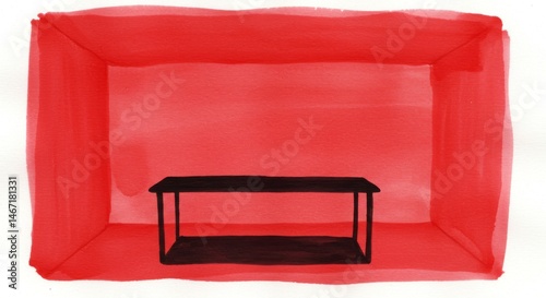 Red Room Minimalist Tabletop Scene - A simple illustration of a black table in a red room, symbolizing minimalism, solitude, simplicity, confinement, and introspection