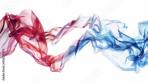 Red, white, and blue American flag, gracefully waving, symbolizing freedom and patriotism, isolated on white background, photorealistic, ethereal, double exposure, minimalistic