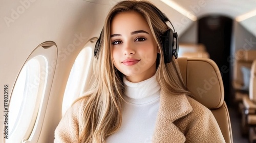 Relaxing in Style: Young Woman Enjoys Private Jet Experience