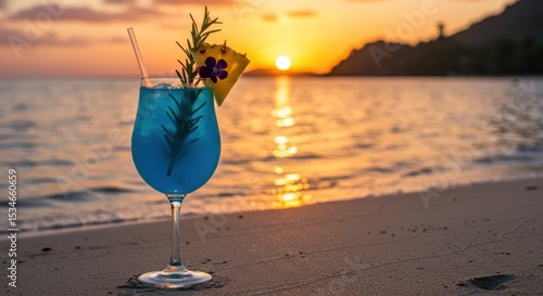 Relaxing sunset drink by the beach coastal paradise tranquil tropical vibes
