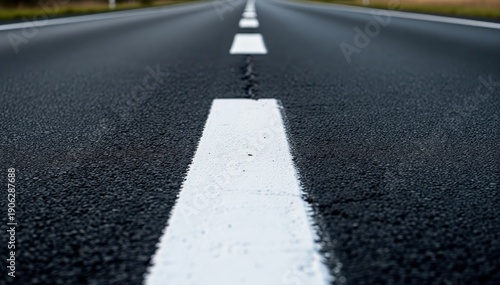 Road ahead: An eye-level perspective captures the stark beauty of a straight road receding into the distance, its white lines a stark contrast against the dark asphalt.