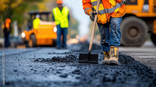 Road Construction Worker Paving Asphalt