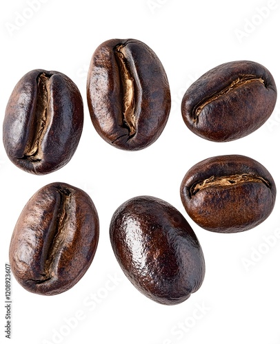 Roasted coffee beans arranged in a circle