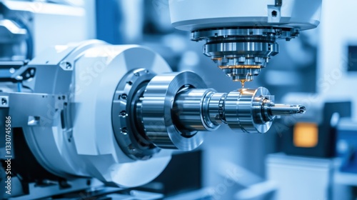 Robotic CNC lathe shaping a cylindrical aluminum part with accuracy