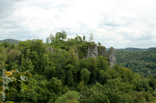 Rocks in the green forest photographed in Germany