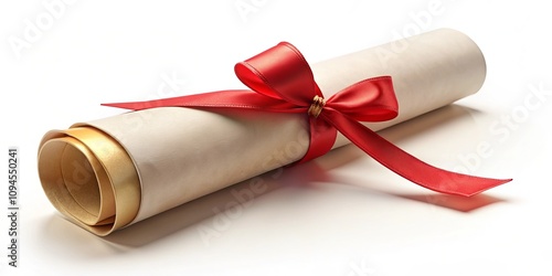 Rolled Diploma Scroll with 3D Message Icon on Isolated PNG Background Representing Educational Achievements, University Success Awards, and Certificates of Accomplishment