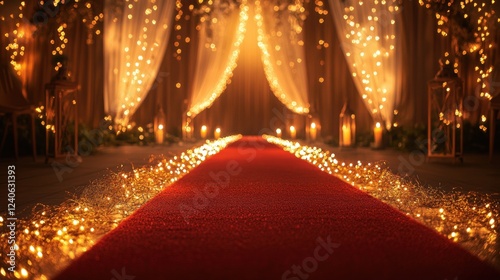 Romantic Wedding Ceremony with Red Carpet and Twinkling Lights