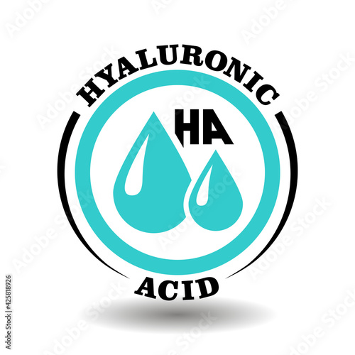 Round vector icon of Hyaluronic acid component with drop sign for HA medical labeling, contain Hyaluron ingredient cosmetics package, anti-age beauty procedure symbol