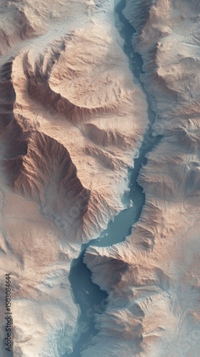 Rugged canyon carved by river aerial landscape earth tone geological formation