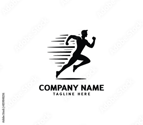 Running Man silhouette logo. Marathon logo black. Speed Running Concept. Running club sports vector
