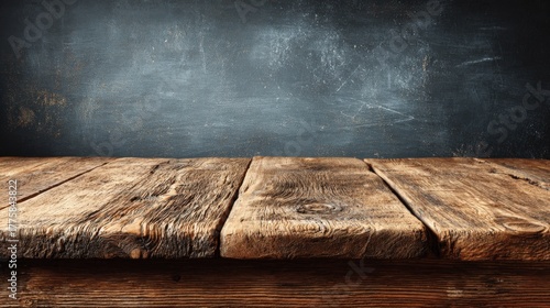 Rustic Wooden Tabletop Surface with Dark Backdrop, Ideal for Product Mockups and Food Photography