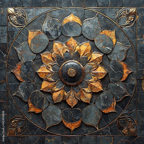 Sacred Sanskrit mandala artwork with gold accents high resolution photo