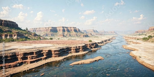 Salt fork Brazos River landscape with layered silt and clay deposits, natural wonder, riverbank erosion, layered rock