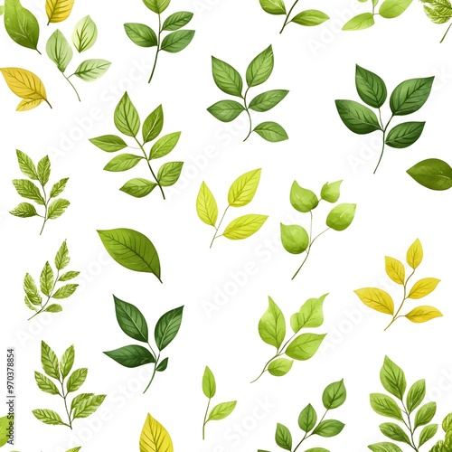 Seamless Natural Pattern with Fresh Various Leaves on White Background