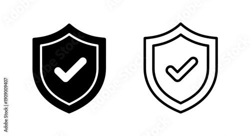 Security Checkmark Shield Icon Set for Digital Protection and Approval