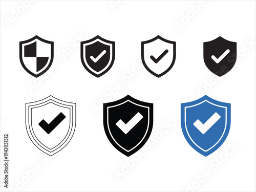 Security Shield Icon black and blue Set, Set of modern shield icons in black and white, Shield check mark icon, Security shield check mark vector icon set flat design illustration
