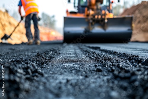 Selective focus of Asphalt contractors working on road
