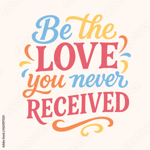 Self love quote be the love you never received. Hand lettering self love quote vector prints. T-shirt design