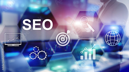 SEO - Search engine optimization, Digital marketing and internet technology concept on blurred background