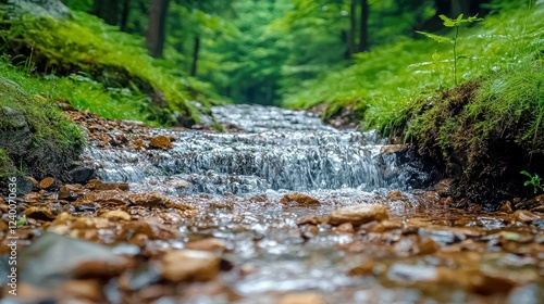 Serene Stream Flowing Through Lush Forest: A Captivating Nature Scene