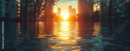 Serene Sunset Reflection Amidst Urban Flooding