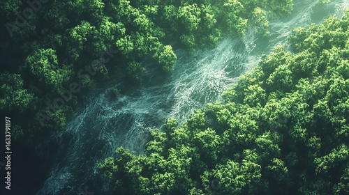 Serene waters flow like veins through verdant forests a hidden world discovered from high above capturing nature s