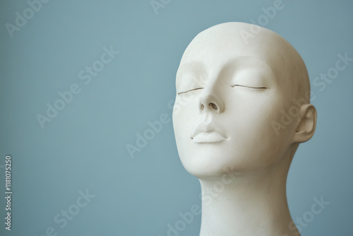 Serene white mannequin head with closed eyes. Suitable for meditation, mindfulness, and inner peace conceptual imagery.