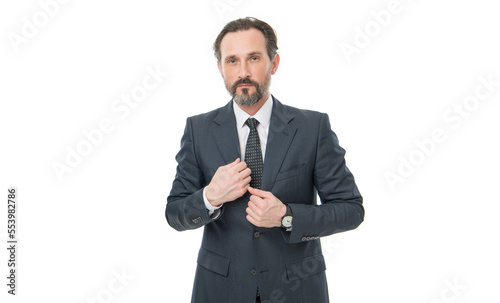 Serious grizzled professional business man businessman boss in formal business suit studio