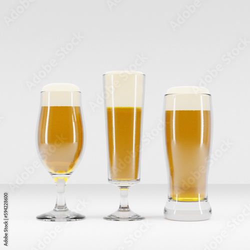 Set of beer glasses on white background. 3d render