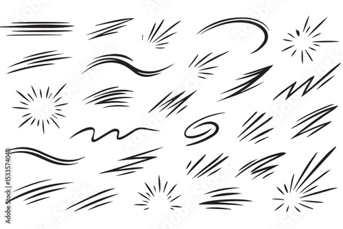 Set of dynamic and explosive motion lines, bursts, and zigzag patterns, ideal for action, energy, and speed design concepts, line art icon set