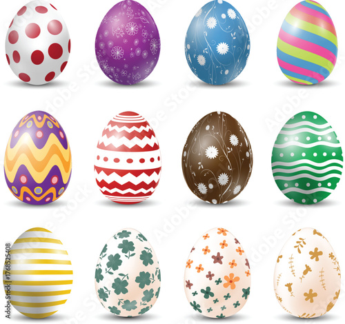 Set of Easter Eggs on White Background — Colorful Decorative Painted Egg Collection