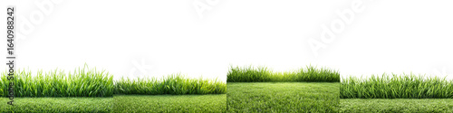 Set of green grass patches isolated on white background for design elements and landscaping projects.