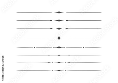 Set vector of minimalist elegant star and sparkle horizontal line divider separator for design layout decoration