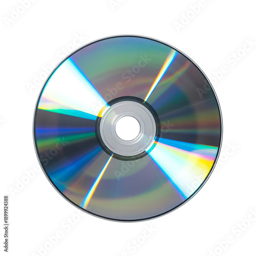 Shiny Compact Disc with Rainbow Light Reflection Isolated on White Background