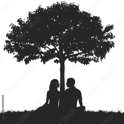 Silhouette of a Couple Under a Tree a Serene Scene of Togetherness and Intimacy in Nature's Embrace on Grassy Ground