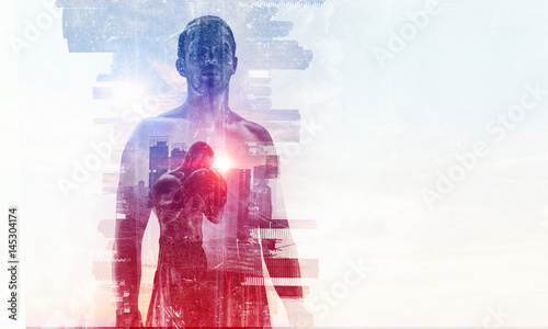 Silhouette of boxer . Mixed media