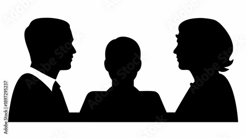 Silhouette of three people in a meeting or discussion with two in profile and one facing forward | editable eps vectors