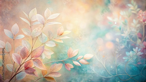 Silhouette soft pastel abstract floral painting with textured background and delicate leaves in muted colors