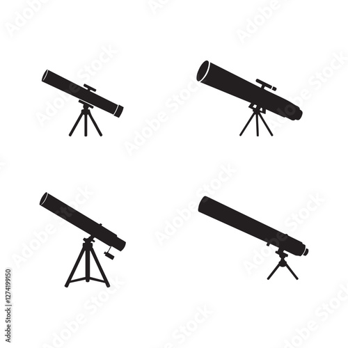 Silhouettes of telescopes vector art illustration