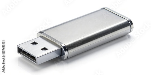 Silver USB Flash Drive on White Background
